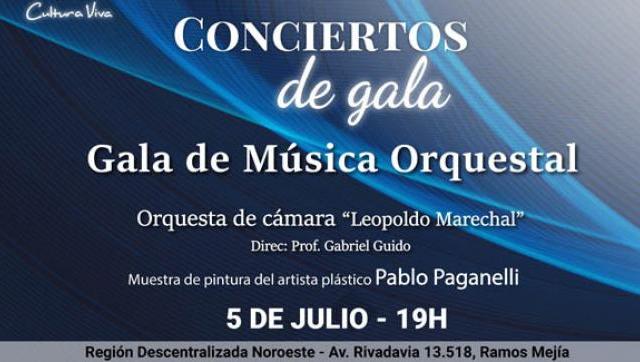 “Conciertos de Gala” es el ciclo cultural más emblemático de la Secretaría de Cultura y Educación en el que se reúnen e interactúan la música y las artes visuales gracias a la colaboración de importantes referentes artísticos en sus distintos géneros y estilos logrando la convivencia entre las expresiones artísticas. Con entrada LIBRE y GRATUITA, este ciclo tiene lugar el primer viernes de cada mes en la Región Descentralizada Noroeste de Ramos Mejía.