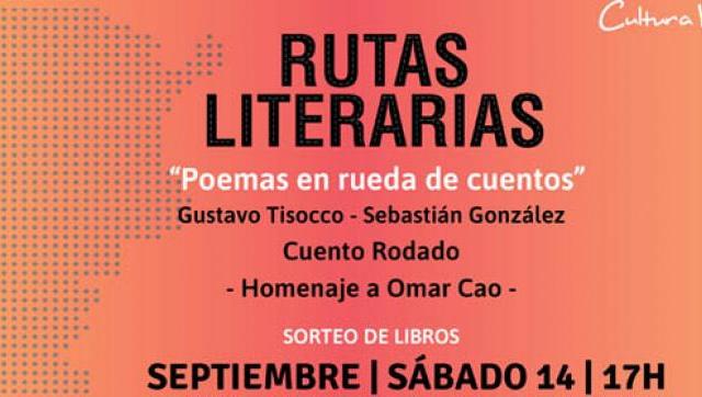 El ciclo literario de Cultura Viva “Rutas Literarias”, propone en su nueva edición, el próximo sábado 14 de septiembre una tarde dedicada a la poesía a través de la obra de los escritores Gustavo Tisocco, Sebastián González y Cuento Rodado, a cargo del grupo de narración Rueda de Libros integrado por Ana de Diego, Susana Kowal, Betty Massolo, Liliana Plos y Alicia Siaba.