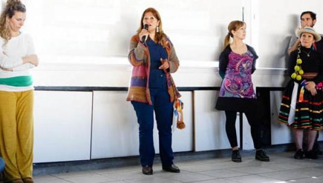 Por la tarde Esther Quiñones compartió la rica experiencia del taller de Cultura Quichua Santiagueña, abriendo con unas palabras en quichua que vibraron en el salón con un sonido profundo. Después Silvia Girotti coordinó una dinámica corporal con un grupo de estudiantes que se animaron al movimiento y al juego. A continuación Claudia Torres y su grupo “Las Morenitas” hicieron un Bailecito, como muestra de su taller de Danzas Norteñas.