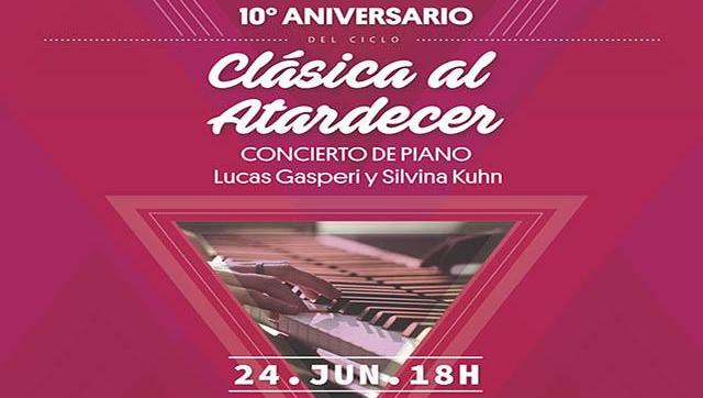El Concierto de Piano, estará interpretado por los jóvenes músicos Lucas Gasperi y Silvina Kuhn, quienes presentarán un repertorio compuesto por obras de autores clásicos y contemporáneos como Marianne von Martínez, Alexander Scriabin, Claude Debussy, Johann Sebastian Bach, Gabriel Fauré, Pascual De Rogatis y Serguéi Prokófiev, entre otros.