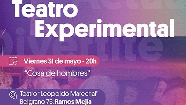 La nueva edición del ciclo Teatro Experimental presenta, el próximo viernes 31 de mayo, a las 20 horas, en el Teatro Municipal “Leopoldo Marechal” de Ramos Mejía, la obra “Cosa de Hombres”, con entrada libre y gratuita, que puede retirar de forma anticipada, de 10 a 15 horas, en la oficinadel teatro.