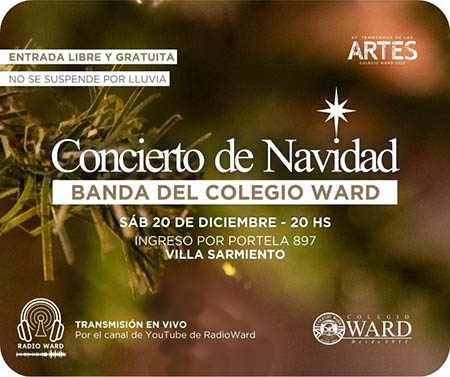 El Concierto de Navidad del Colegio Ward se realizará el 20 de diciembre a las 20 horas. Entrada por calle Portela 897, Villa Sarmiento. Será transmitido en vivo por el canal de YouTube de Radio Ward.