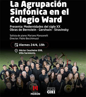 El próximo viernes 24 de abril a las 19 horas, el Colegio Ward abrirá sus puertas para recibir, una vez más, a la prestigiosa Agrupación Sinfónica de Morón, dependiente de la Secretaría de Cultura del Municipio de Morón y dirigida por el maestro Pablo Bochimuzzi.