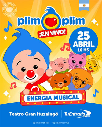 Creado por Guillermo “Tita” Pino, Plim Plim se ha consolidado como el fenómeno infantil de mayor crecimiento en habla hispana. En 2025, su gira internacional recorrió más de 70 ciudades en 10 países, y ahora llega a Ituzaingó para compartir su alegría con las familias locales.