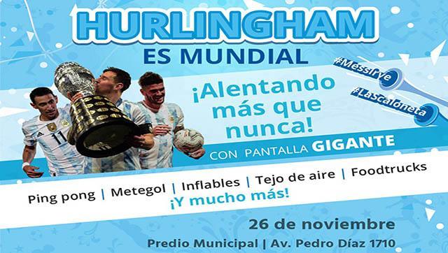 El Municipio de Hurlingham transmitirá el partido entre Argentina y México este sábado 26 de noviembre, a través del “Punto de Aliento” de la TV Pública en pantalla gigante, en el predio del Edificio Municipal ubicado en Avenida Pedro Díaz 1710.