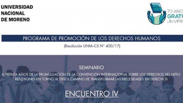 Cuarto encuentro del seminario "A treinta años de la promulgación de la convención internacional sobre los derechos del niño. Reflexiones en torno al difícil camino de transformar necesidades en derechos". Hoy martes 5 de noviembre a las 18:30 hs.