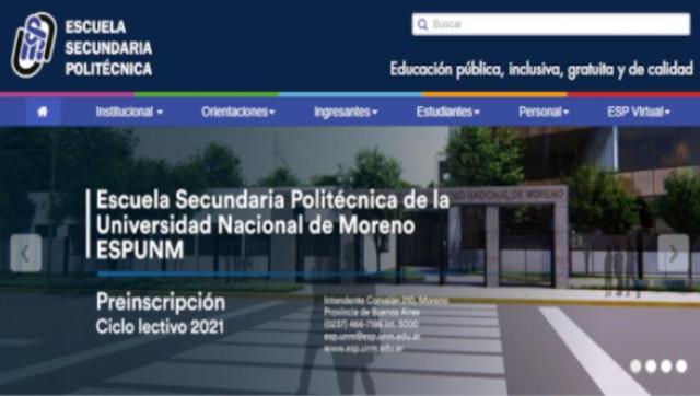 A partir del lunes 17 de agosto y hasta el viernes 5 de octubre, la Escuela Secundaria Politécnica de la Universidad Nacional de Moreno (ESPUNM) llevará adelante la preinscripción al Ciclo lectivo 2021, con dos modalidades: Bachillerato en Economía y Administración y Tecnicatura en Informática Profesional y Personal.
