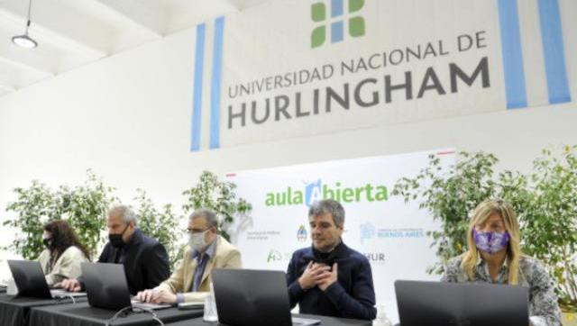 El programa “Aula Abierta” fue presentado en la UNAHUR el 21 de mayo con las presencias del gobernador Axel Kicillof, el ministro de Educación de la Nación Nicolás Trotta, el intendente Juan Zabaleta, el secretario Jaime Perczyk, el presidente de la cámara de diputados de la Nación, Sergio Massa, el diputado nacional Máximo Kirchner y el presidente del ENACOM Claudio Ambrosini.