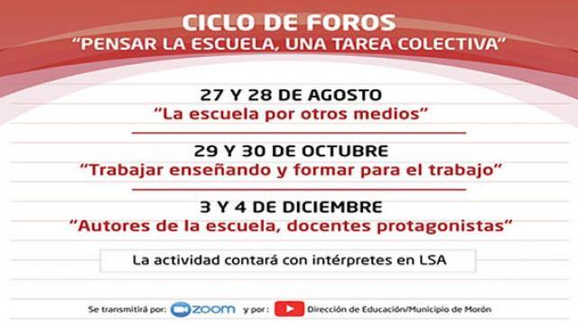 El municipio de Morón lanza el ciclo de foros virtuales “Pensar la escuela, una tarea colectiva” destinado a docentes de todos los niveles y modalidades del distrito.