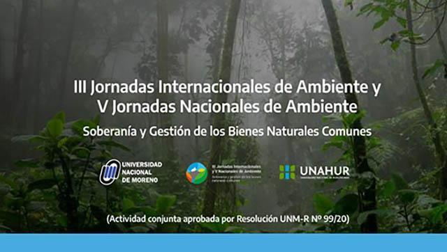 La Licenciatura en Gestión Ambiental de la Universidad Nacional de Moreno (UNM) y la Univesidad Nacional de Hurlingham (UNAHUR) realizará la III Jornadas Internacionales de Ambiente y V Jornadas Nacionales de Ambiente "Soberanía y gestión de los bienes naturales comunes", los días 12, 13 y 14 de mayo de 2021 de forma virtual.