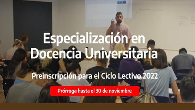 La Universidad Nacional de Moreno (UNM), prorroga el plazo a la preinscripción para el Ciclo lectivo 2022 a la carrera de posgrado Especialización en Docencia Universitaria, para su cohorte 2022.