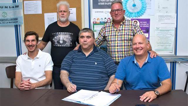 Durante la firma estuvieron presentes el Prosecretario de Extensión Universitaria, Nicolás Martínez; el Secretario General de ADUNLaM, Sergio Barberis y el Secretario Adjunto, Mario Sequeira; el Secretario General de ATUNLaM, Ricardo Faraldi y el Coordinador General de Deportes de la UNLaM, Adrián Verdini.