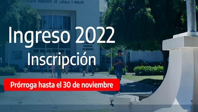 La Universidad Nacional de Moreno informa que se prorrogará la inscripción al ciclo lectivo 2022 hasta el martes 30 de noviembre.
