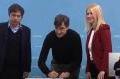 Kicillof encabezó el acto acompañado por el intendente local, Juan Ignacio Ustarroz; el director general de Cultura y Educación, Alberto Sileoni; la ministra de Gobierno, Cristina Álvarez Rodríguez; y la directora de la institución, Ana Carruther.