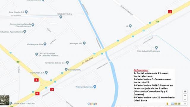 Así mismo, los conductores que circulan habitualmente por esa zona tienen la opción de desvío por Ruta 21 desde González Catán cruzar anteriormente en Guillermo Marconi. Desde Eva Duarte, cruzar posteriormente en Guillermo Marconi. Quienes circulen por la calle  Carlos Casares del lado de Ruta 21: Desvío hacia la izquierda por Ruta 21, luego doblar a derecha en calle Guillermo Marconi del lado Sur: Desvío hacia la derecha por Guillermo Marconi.