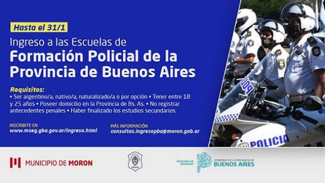El Ministerio de Seguridad de la Provincia de Buenos Aires, lanzó la convocatoria al ciclo lectivo 2021 para ser parte de las Fuerzas de Seguridad y 100 vecinos y vecinas de Morón podrán trabajar dentro del partido. De esta forma, es necesario inscribirse antes del 31 de enero al Ingreso de las Escuelas de Formación Policial, y cumplir con ciertos requisitos, además de tener vocación de servicio, compromiso y responsabilidad.
