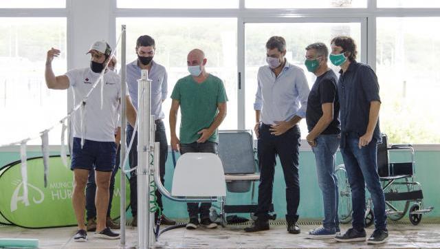 El equipamiento que se incorporó es un elevador hidráulico que facilita el acceso de personas con discapacidad física a la pileta. Además, se sumaron una silla higiénica, una silla ortopédica y una silla anfibia, preparada para meter en el agua a través de la rampa de acceso.