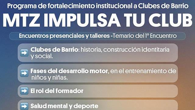 El Gobierno local presenta MTZ Impulsa Tu Club, una propuesta destinada a potenciar a los clubes. Con encuentros y talleres, el programa de fortalecimiento institucional abordará aspectos clave para la formación deportiva integral de chicos y chicas, y brindará nuevas herramientas de gestión y desarrollo.