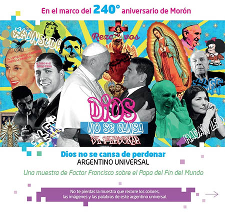 Como parte de los festejos, se inaugurará la muestra de arte “Dios no se cansa de perdonar. Argentino Universal”, realizada por Factor Francisco. La exposición, que recorre la vida y el mensaje del Papa Francisco a través de imágenes, colores y palabras, podrá visitarse del jueves 2 al sábado 4 y del lunes 6 al jueves 9 de octubre, de 8 a 16 hs, en Buen Viaje 968, Morón centro.