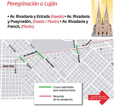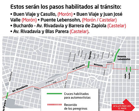 Reordenamiento vehicular y asistencia para peregrinos en Morón este sábado
