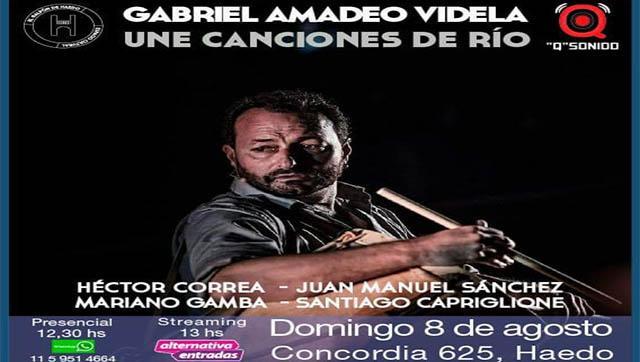 El domingo 8 de agosto Gabriel Amadeo Videla dará un recital presencial a las 12:30 hs (almuerzo opcional) y a las 13 hs vía Streaming en el Galpón de Haedo, Concordia 625.