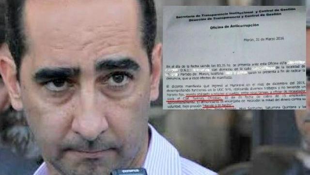 En la denuncia, radicada en la Oficina Anticorrupción el día 31 de marzo de 2016, se puede leer que el denunciante alertó sobre lo que estaba pasando a las autoridades municipales: “siendo obligado a retener el sueldo, entre otras tareas, a oficiar de recaudador para el Cjal. Salinas, Christian. El día de la fecha de cobro de 15 empleados aproximadamente”.