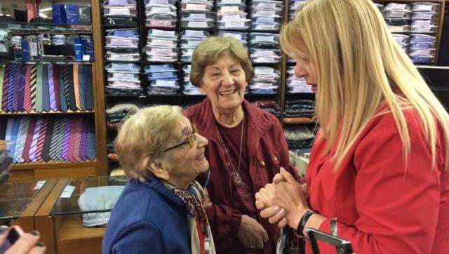 Junto a los precandidatos a concejales moronenses Martín Marinucci y Sandra Yametti, la flamante aliada de Sergio Massa y titular del GEN dialogó con vecinos y comerciantes.
