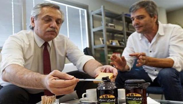“Gracias a la Ley de Góndolas, los emprendedores locales van a poder vender sus productos regionales en los supermercados. Con @JuanZabaletaOK compartimos unas deliciosas mermeladas elaboradas en Hurlingham que muy pronto se venderán en los comercios del municipio”, escribió Fernández en su cuenta de Twitter.