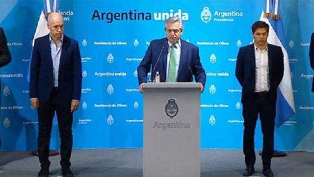 “Llegamos al gobierno sabiendo que íbamos a gobernar tanto en los buenos como en los malos momentos. Espero que haya mejores momentos en los cuatro años que me quedan como Presidente”, agregó Fernández, quien reiteró el pedido de colaboración de todos los argentinos y todas las argentinas, en especial a los habitantes del Área Metropolitana de Buenos Aires, donde, precisó, “se encuentra el 70 por ciento de los casos detectados”.