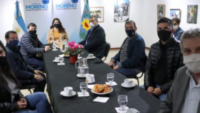 La intendenta Mariel Fernández y el ministro de Desarrollo Social de la Nación Daniel Arroyo, junto con el equipo del Ministerio, la Secretaria de Desarrollo Comunitario Noelia Saavedra, el Secretario de Cultura, Educación y Deportes Emmanuel Fernández, el Presidente de Desarrollo de Capital Humano Ferroviario Damián Contreras y el Interventor de Obra Social de Empresarios, Profesionales y Monotributistas (OSDEPYM) Horacio Alonso mantuvieron una reunión de trabajo en Moreno.