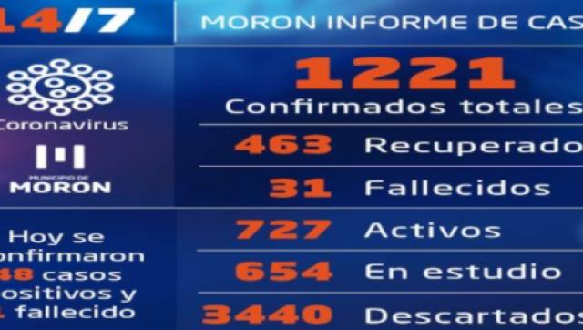 Los nuevos confirmados son 25 mujeres y 23 hombres y elevan la cifra de vecinas y vecinos afectados a 1.221, ya que una persona anteriormente notificada como habitante de Morón está domiciliada en otro distrito.