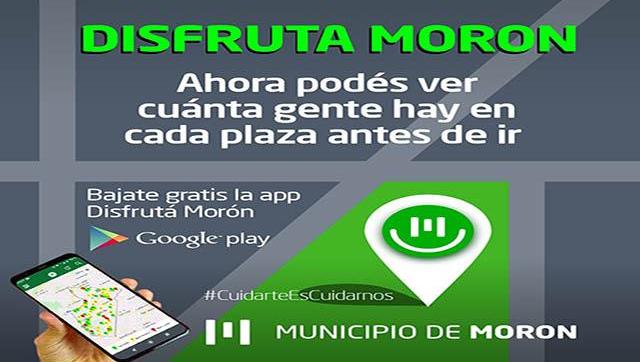 Con el objetivo de prevenir situaciones de aglomeración que favorezcan los riesgos de contagio de Covid 19, el Municipio de Morón desarrolló la aplicación DISFRUTÁ MORÓN, la cual le permitirá a las y los usuarios saber si en un espacio verde hay poca, bastante o mucha gente. El relevamiento se realizará cada hora, entre las 9 y las 19 los días sábados, domingos y feriados y estará a cargo de vigiladores, placeros y, de manera remota, desde la Central de Operaciones y Monitoreo del Municipio.