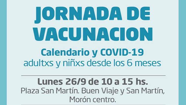 Este lunes 26 de septiembre en la Plaza Gral. San Martín se realizará una jornada de vacunación que incluirá las dosis de calendario y contra el COVID-19. Los vecinos y vecinas moronenses podrán regularizar su esquema y por primera vez se vacunará a bebés desde los 6 meses.
