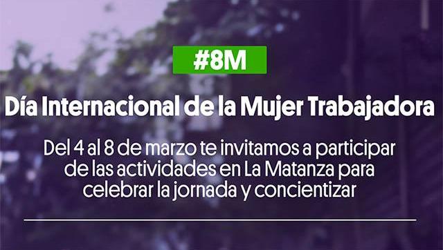 La Municipalidad de La Matanza, a través de la Secretaría de Mujeres, Políticas de Género y Diversidades, invita a toda a comunidad a participar esta semana en una serie de actividades en conmemoración del Día Internacional de la Mujer. Las actividades se realizan desde este lunes 4 al 8 de marzo en diversas localidades del distrito.