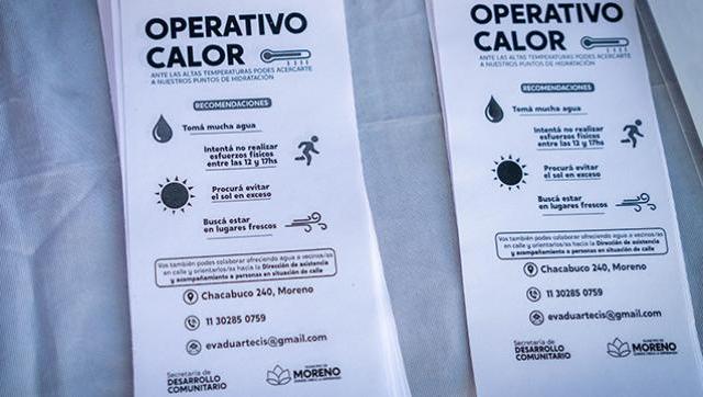 Con el objetivo de mitigar los efectos del intenso calor sobre las personas en situación de calle, el Municipio de Moreno lanzó el "Operativo Calor", una iniciativa destinada a brindar asistencia en jornadas de altas temperaturas. Este operativo se llevará a cabo los días miércoles 22 y jueves 23 de enero, de 10 a 13 horas, y se repetirá en caso de que se emita un alerta naranja por las condiciones climáticas extremas.