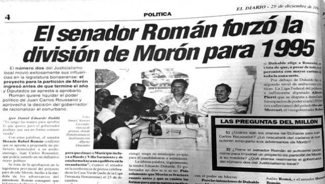 Hace exactamente 20 años se anunció que el Partido de Morón se desprendería de Ituzaingó y Hurlingham, una decisión política que se explica a partir de una intensa interna en el PJ entre el entonces gobernador de Buenos Aires, Eduardo Duhalde, y el presidente Carlos Menem.