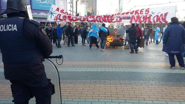 Vendedores ambulantes de Morón se manifiestan en la esquina del Palacio Municipal en reclamo por sus fuentes de trabajo. El pasado jueves, el Municipio levantó todos los puestos impidiéndoles continuar con su labor.