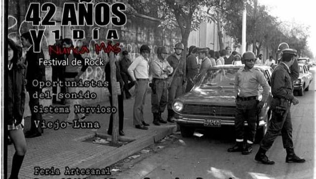 A 42 años y 1 día del golpe de Estado de 1976, se volverá a reclamar "Memoria, Verdad y Justicia", con la presencia de varias bandas: Oportunistas del Sonido, Sistema Nervioso y Viejo Luna.