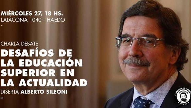 El miércoles 27 de junio, desde las 18, se llevará a cabo en Haedo la charla-debate "Los desafíos de la Educación Superior en la actualidad", a cargo del ex ministro de Educación de la Nación Alberto Sileoni.