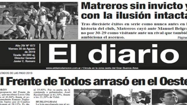 Ya salió la edición impresa N° 872 de Agosto de El diario, También la podés leer online o bajarla en PDF. Ahora con más distritos de cobertura y alcance geográfico. ¡No te la pierdas!