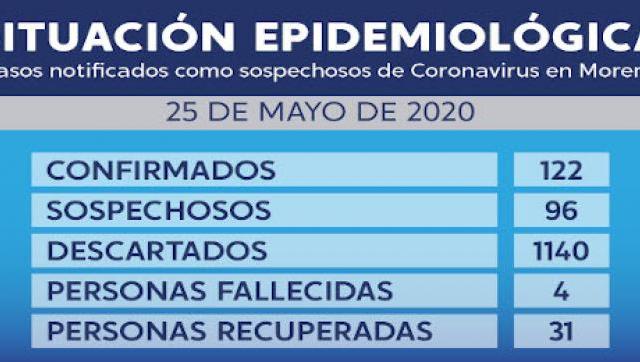 Al día de ayer, en el Municipio de Moreno se registraron 1140 notificaciones de casos: 122 corresponden a casos confirmados, 96 a casos sospechosos y 1140 a casos descartados.