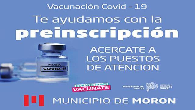 Morón refuerza la preinscripción al plan provincial público, gratuito y optativo contra el Covid-19, mediante los puestos de asistencia que se ubican en todo el distrito, donde los habitantesse pueden acercar para completar el formulario del Ministerio de Salud de la Provincia (https://vacunatepba.gba.gob.ar/).