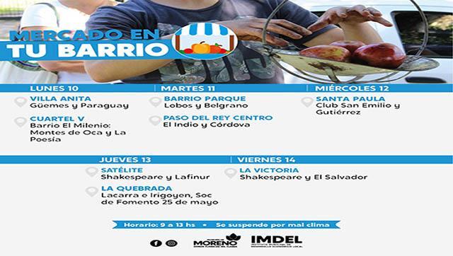 Calendario semanal de “Mercado en tu barrio” en Moreno
