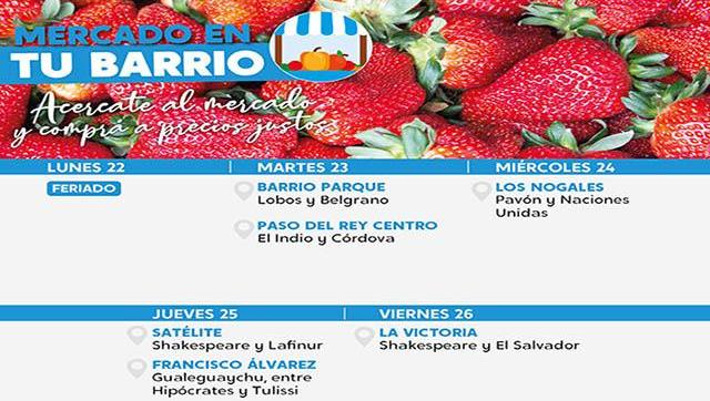 Calendario semanal de “Mercado en tu barrio” en Moreno