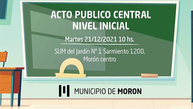 El municipio de Morón, el próximo el 21 de diciembre a las 10 hs en el SUM del Jardín N°1, en Sarmiento 1200, Morón Centro, llevará a cabo el Acto Público Central para cubrir cargos docentes en educación, en el Nivel Inicial para 2022.