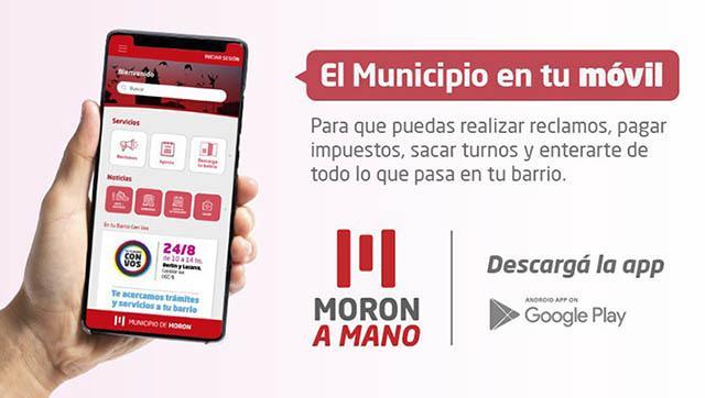 El Municipio de Morón desarrolló la aplicación Morón a Mano que permite a los vecinos y vecinas acceder a distintos servicios municipales, realizar reclamos y enterarse de las novedades del distrito de manera sencilla y ágil.