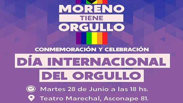 El Municipio de Moreno, a través de la Secretaría de Mujeres, Géneros y Diversidades, conmemora y celebra el Día Internacional del Orgullo este martes 28 de junio, a las 18 horas en el Teatro Marechal.