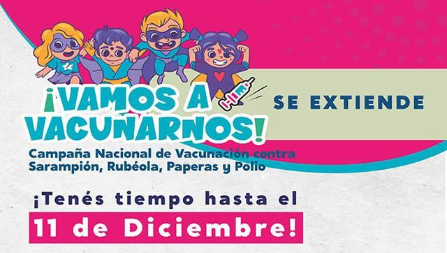 La "Campaña Nacional de Vacunación contra el Sarampión, Rubéola, Paperas y Polio", destinada a vacunar a niños y niñas de entre 0 y 4 años, se extiende hasta el día domingo 11 de diciembre.