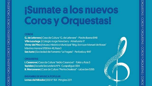 En ese sentido, invitan a niños, niñas y jóvenes en edad escolar (primaria y secundaria) a participar de los nuevos coros y las nuevas orquestas se suman a la actividad musical del Distrito, quienes pueden acercarse a alguna de las sedes o realizar sus consultas a través de lmorquestasycorosculturaviva@gmail.com.