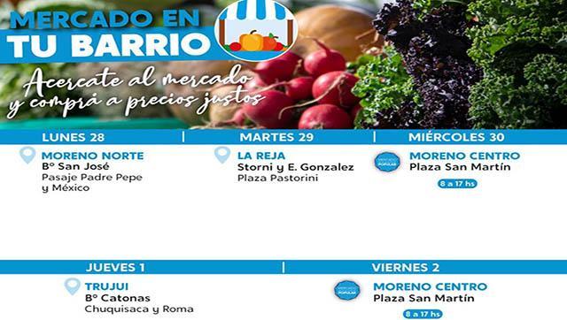 Los mismos se realizan todas las semanas en diferentes puntos del distrito -en modalidad itinerante- para que todas las vecinas y los vecinos puedan acceder a una vasta variedad de víveres entre los que se encuentran: frutas y verduras; pastas y lácteos; huevos de campo; aceite; miel; legumbres; panificados; productos de limpieza y floricultores a precios accesibles.